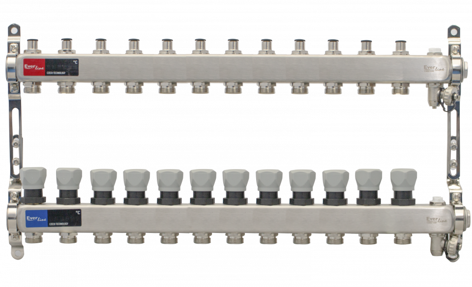 Nerezový rozdelovač s ručným ovzdušňovacím a vypúšťacím ventilom 1"- 12 okruhový